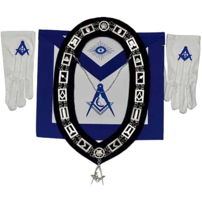 Ensemble de Regalia Maçonniques : Tablier en Cuir Blanc et Outils de Travail, Chaîne de Col, Tendance et Respirant