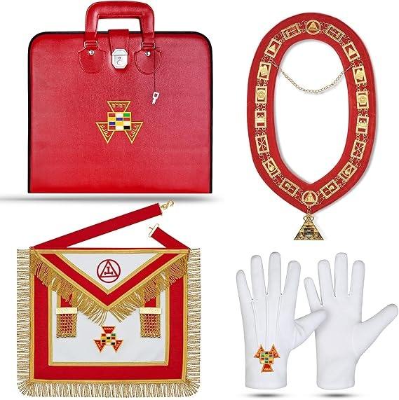 Ensemble maçonnique Royal Arch de qualité supérieure, fabriqué à la main – Tablier Triple Tau, étui, collier avec bijou et gants en coton