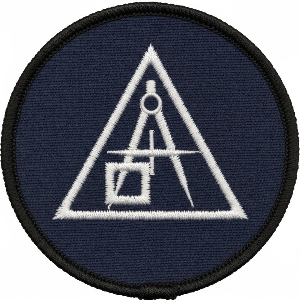 Écusson triangulaire maçonnique en forme de truelle, bleu marine discret, brodé, pour uniforme rituel de la Franc-maçonnerie, à coudre