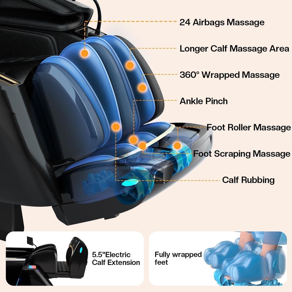 Portable, zéro gravité, Pliable, Vibration, Massage de pied, soins de santé, Écologique, manipulateur 4d, compresse chaude, suivi sl massage, commande vocale intelligente, système Bluetooth, gestion à distance d'ordinateur