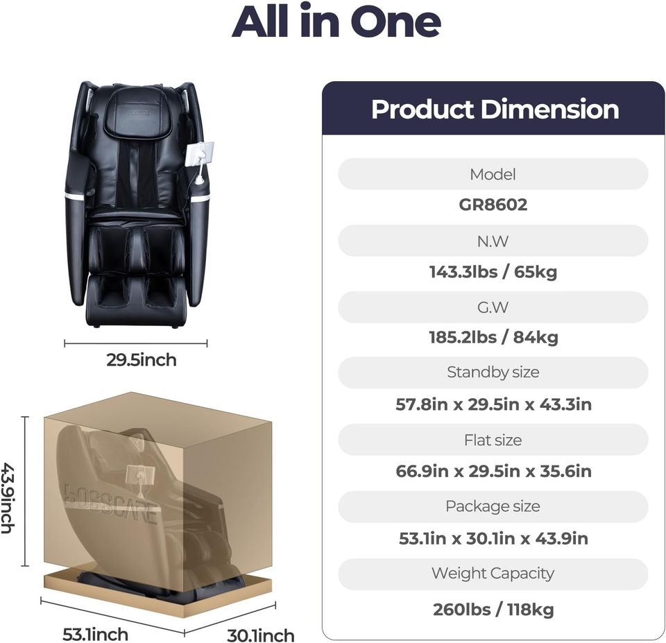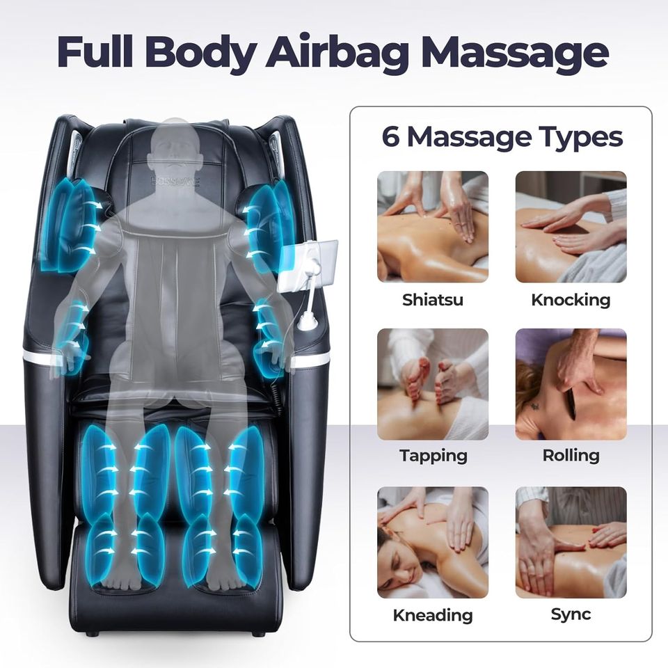 Portable, zéro gravité, Pliable, Vibration, Massage de pied, manipulateur 4d, compresse chaude, suivi sl massage, commande vocale intelligente, système Bluetooth