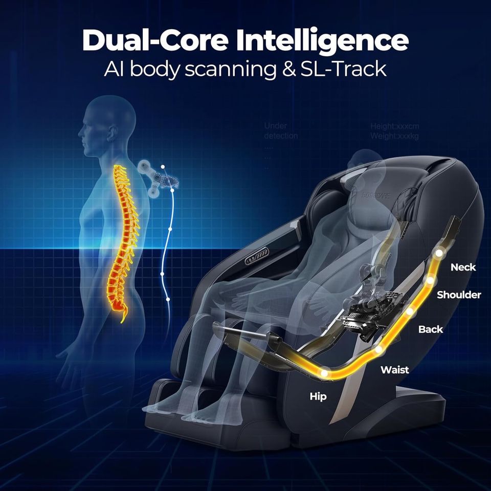 Fauteuil de massage pour tout le corps, fauteuils de massage en apesanteur, inclinable avec rouleaux fixes, modes automatiques, airbag, chauffage du dos, Bluetooth