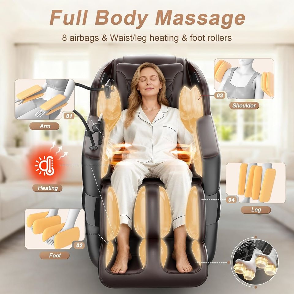 Fauteuil de massage avec oxygène négatif, réglage automatique des épaules, fauteuil de massage électrique inclinable pour tout le corps avec gravité zéro