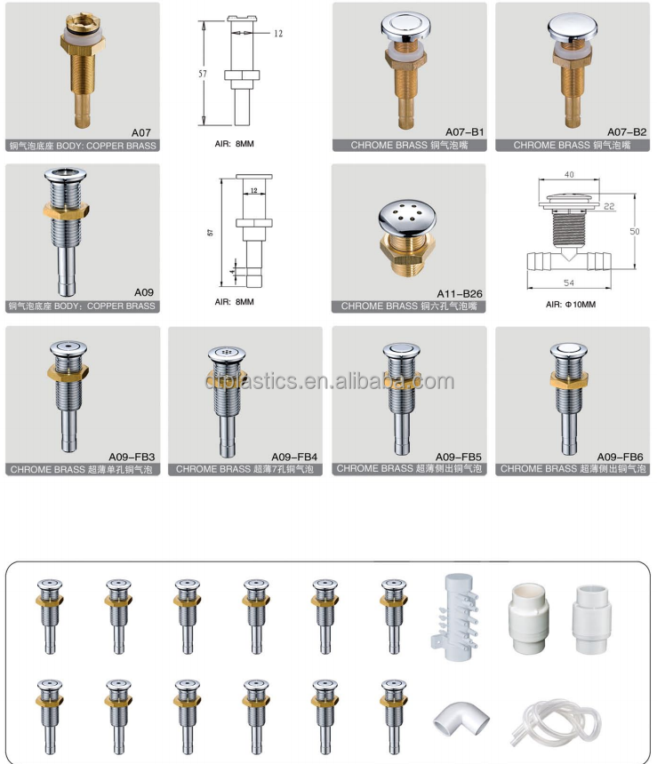 Pièces détachées pour bain à remous, spa, piscine, baignoire hydromassante : composant de jet d'air à bulles d'aspiration