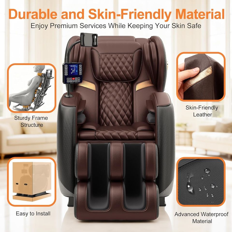 Chaise de massage pour le corps entier, chaise de massage à gravité zéro avec chauffage, chaise inclinable de massage Shiatsu avec commande vocale intelligente