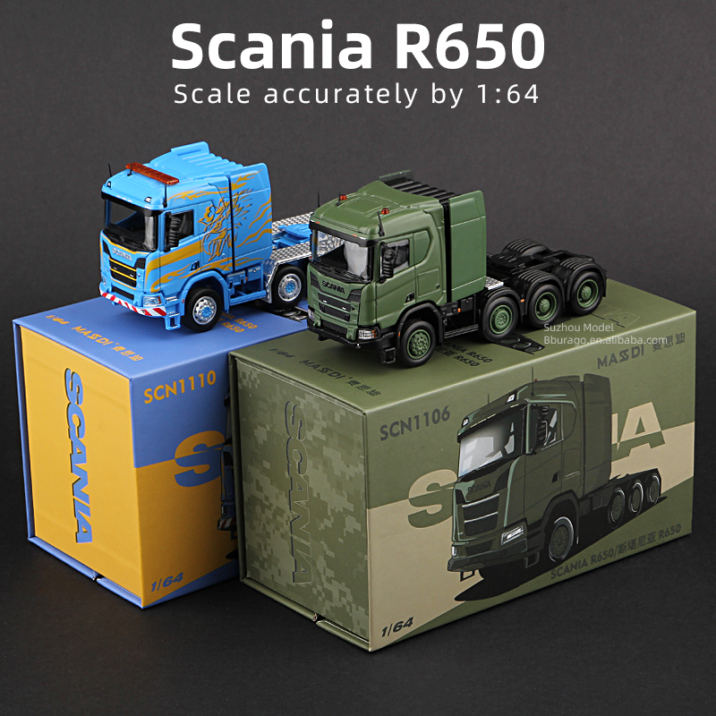 Massdi 1/64 Scania R650 Flatbed Trailer Alloy Car Model Diecast Trunk Lorry Vehicle Car Collection Toy