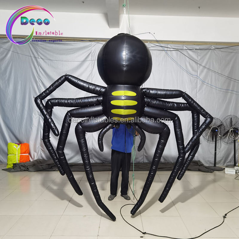 Araignée gonflable suspendue animée massive, gonflable d'halloween d'araignée noire géante