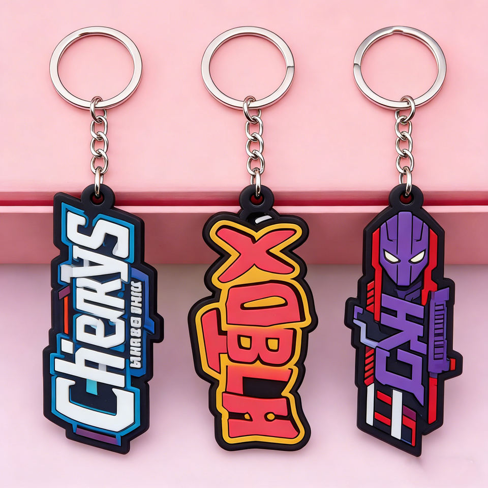 Porte-clés en PVC souple 2D, fabriqué avec maestrie par un fabricant expert, avec décoration de sac en polychlorure de vinyle gaufré en profondeur
