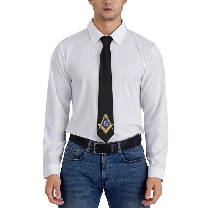 Cravate maçonnique Blue Lodge Cravate avec carré d'or et boussole G 2025 Polyester OEM entretenu pour les francs-maçons Master Mason's Regalia