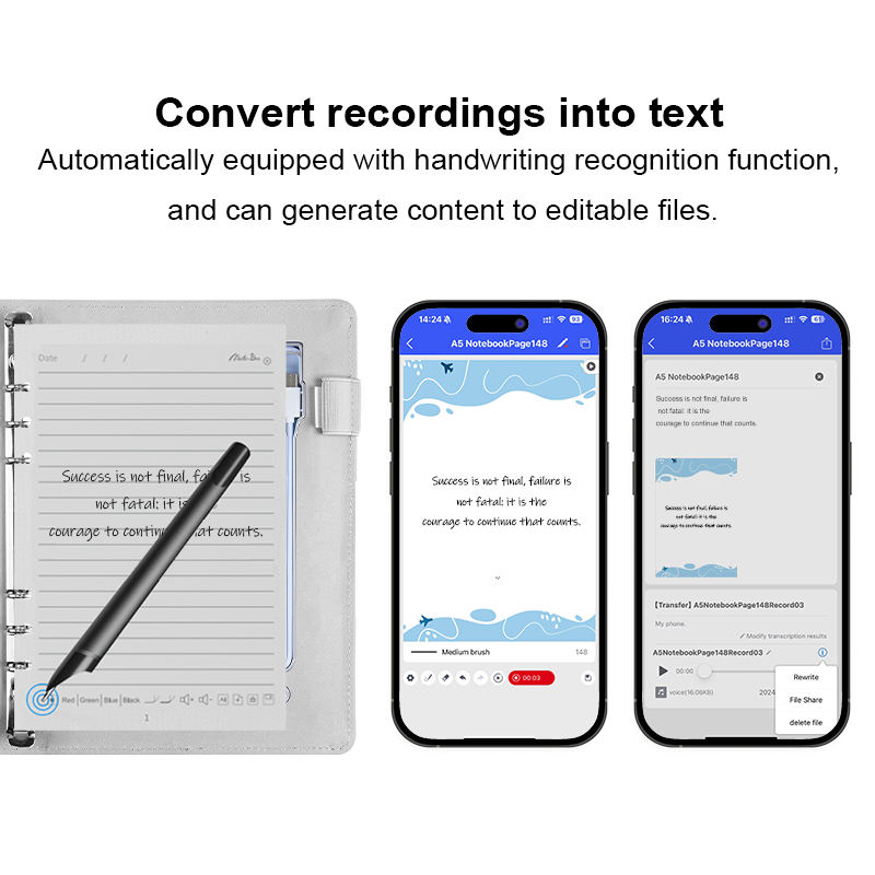 Carnet intelligent + stylo futé de synchronisation avec le logiciel d'AI