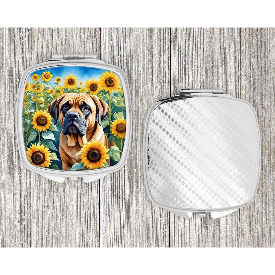 Mastiff Tournesols Miroir de maquillage de voyage compact et pliant Cadeau décoratif de poche pour femmes et filles