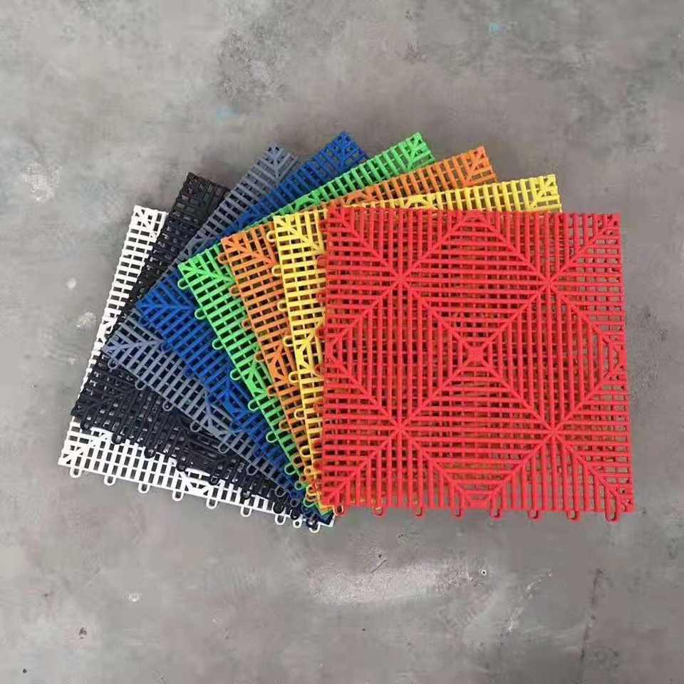 Dalles de revêtement de sol de garage antidérapantes à clipser, lisses et colorées, résistantes aux produits chimiques, pour ateliers d'installation de pneus