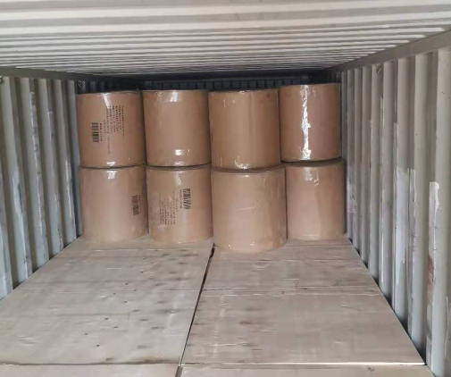 Emballage avec rouleau de carton, puis enveloppé avec un film plastique.