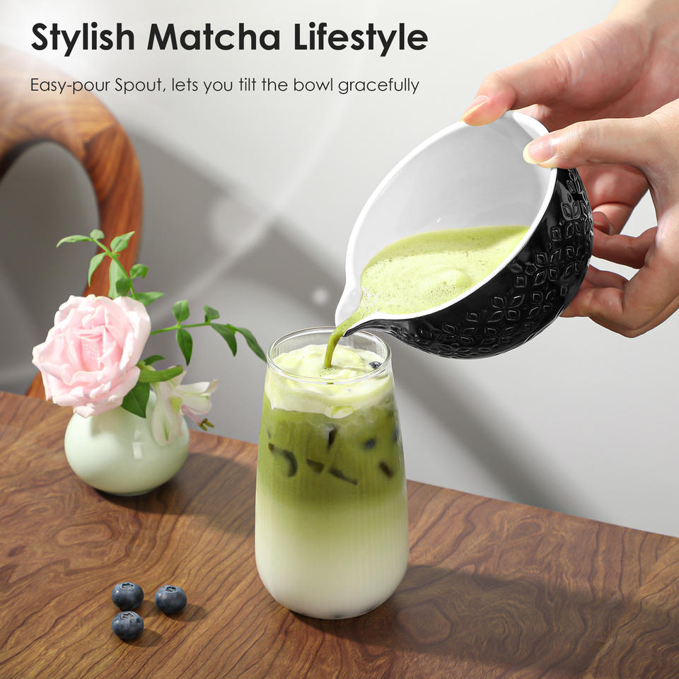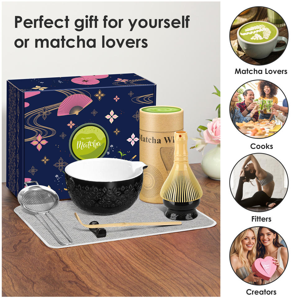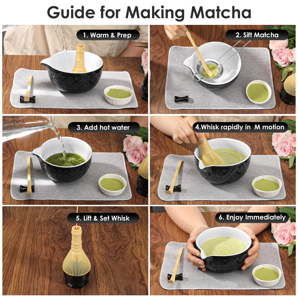 Ensemble Matcha 7 pièces, ensemble de thé Matcha en céramique de style japonais, bol traditionnel gravé, fouet en polypropylène, thé au café