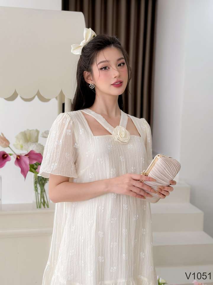 Maternity Dress With a Straight Design Made of Soft Embroidered Silk Chiffon Material Comfortable to Wear V1051 Not Discolored