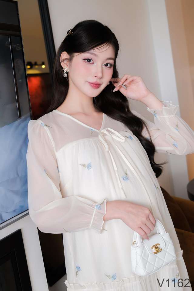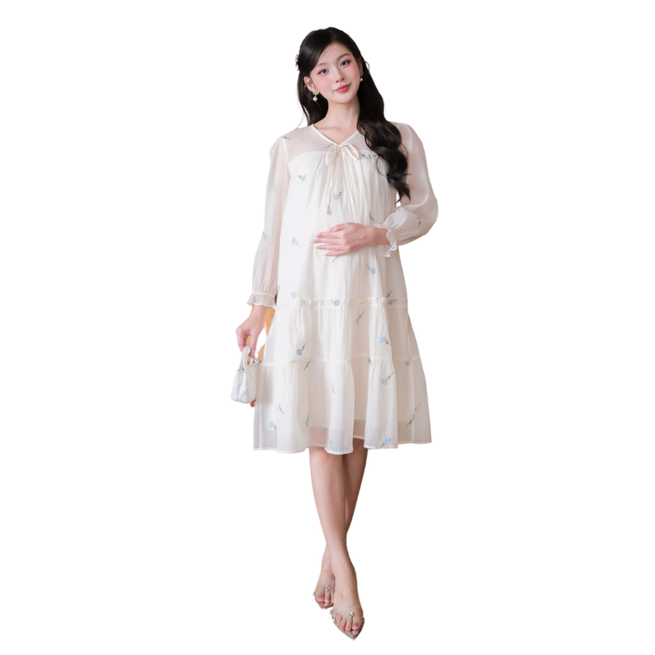 Robe de maternité au design droit en mousseline de soie brodée douce confortable à porter V1162 non décolorée