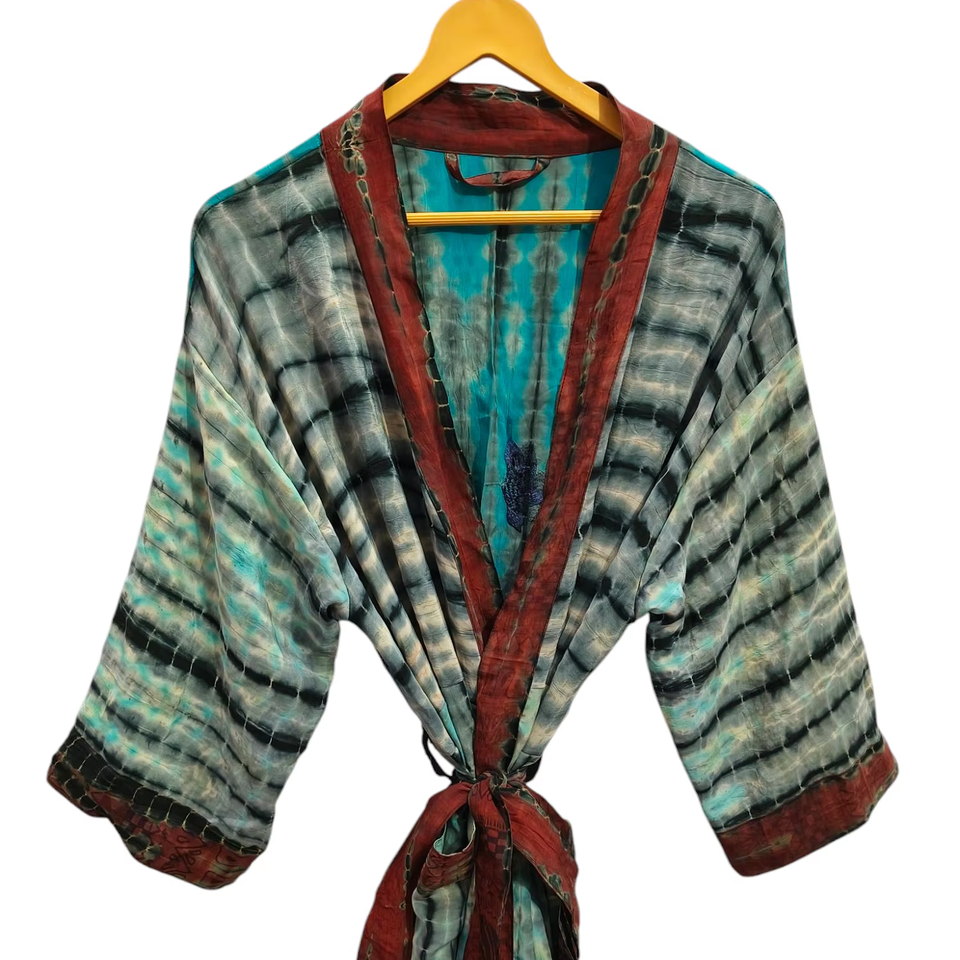 Robe de maternité Cadeau Robe de plage Fête porter indien imprimé soie Sari Kimono Robe portefeuille indien Tunique Sari Robe de mariée,