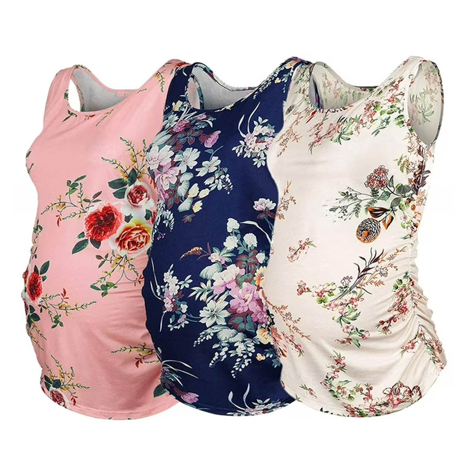 Maternity Shirt Women Plus Size Summer Sleeveless Tank Tops Solid Ruched Side Pregnancy Tee Breathable 100% Cotton Breastfeeding