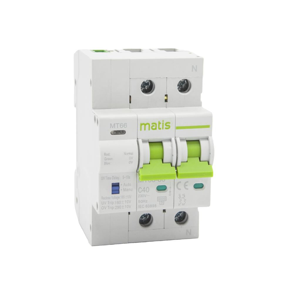 Matis MT66UV 2P protecteur de tension sur et sous 220V disjoncteur système d'énergie solaire sûr mini disjoncteur pour maison intelligente