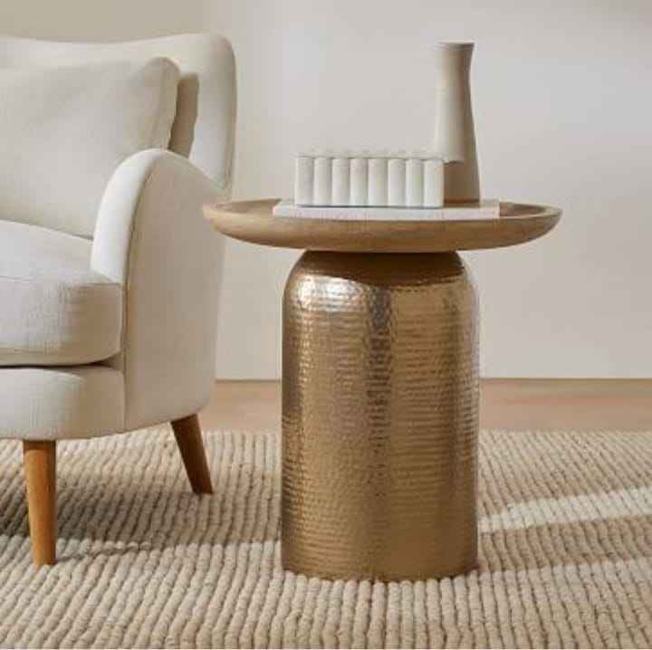 Table basse en métal enduit noir mat Table d'appoint à emboîtement arrondie au design martelé pour bureau, maison, salon, meubles pour canapé
