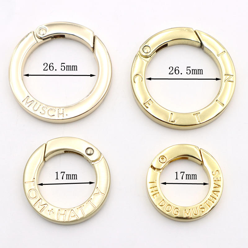 Anneau à ressort gravé avec le logo Matt Gold, fermoir à mousqueton, anneau métallique à ressort, accessoires