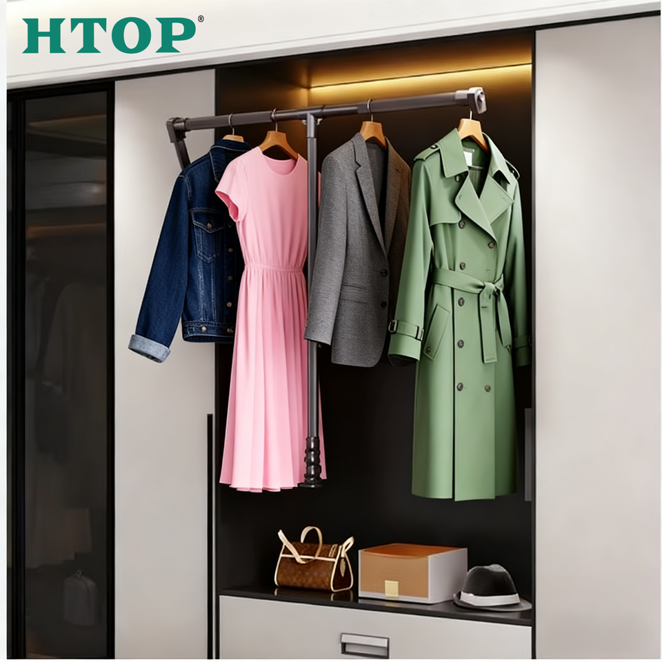 Porte-vêtements télescopique en aluminium noir mat, organisateur de placard de luxe, réglable en hauteur, pour armoires hautes