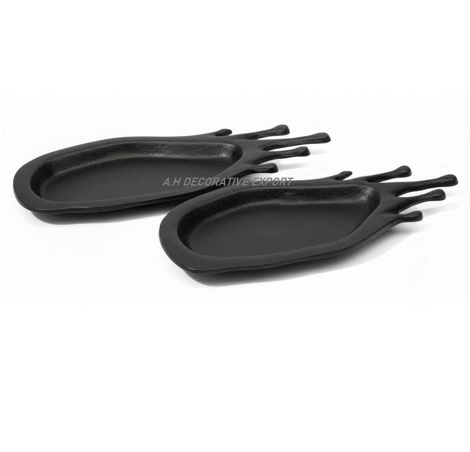 Plateaux de service décoratifs modernes industriels en métal thermolaqué, design géométrique, noir mat, faits à la main, personnalisables