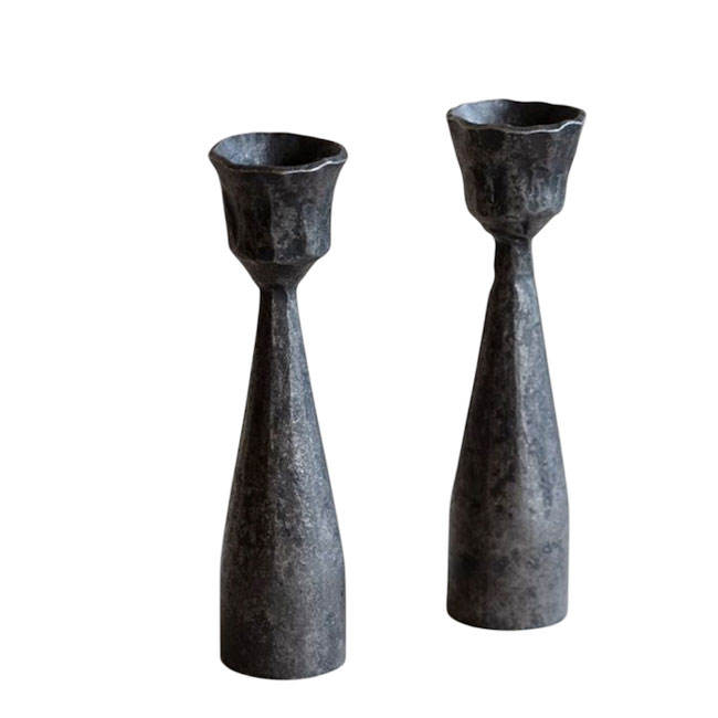 Support à bougie en fer forgé noir mat avec poignée pour la décoration de la maison