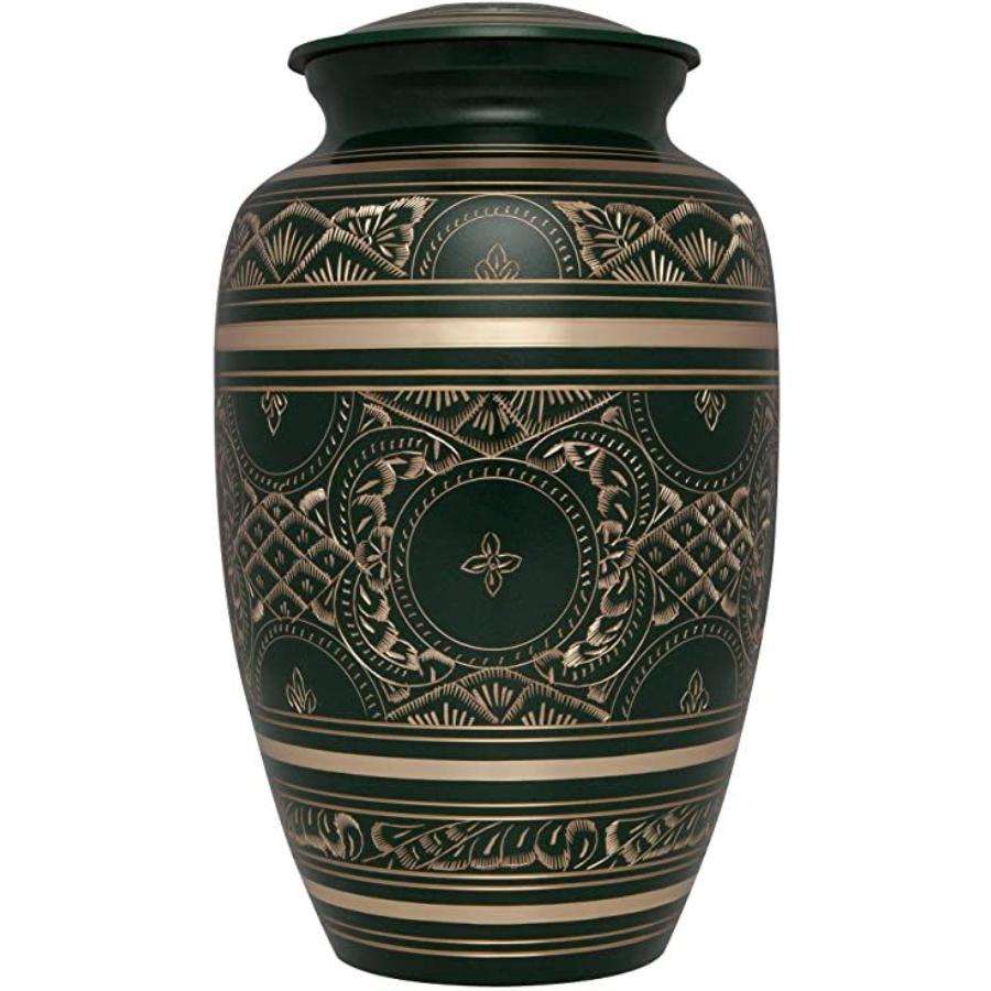 Product Name:Brass Adult Cremation Urn Milano Red & Gold Hand Engraved Floral Band