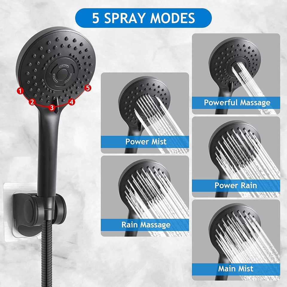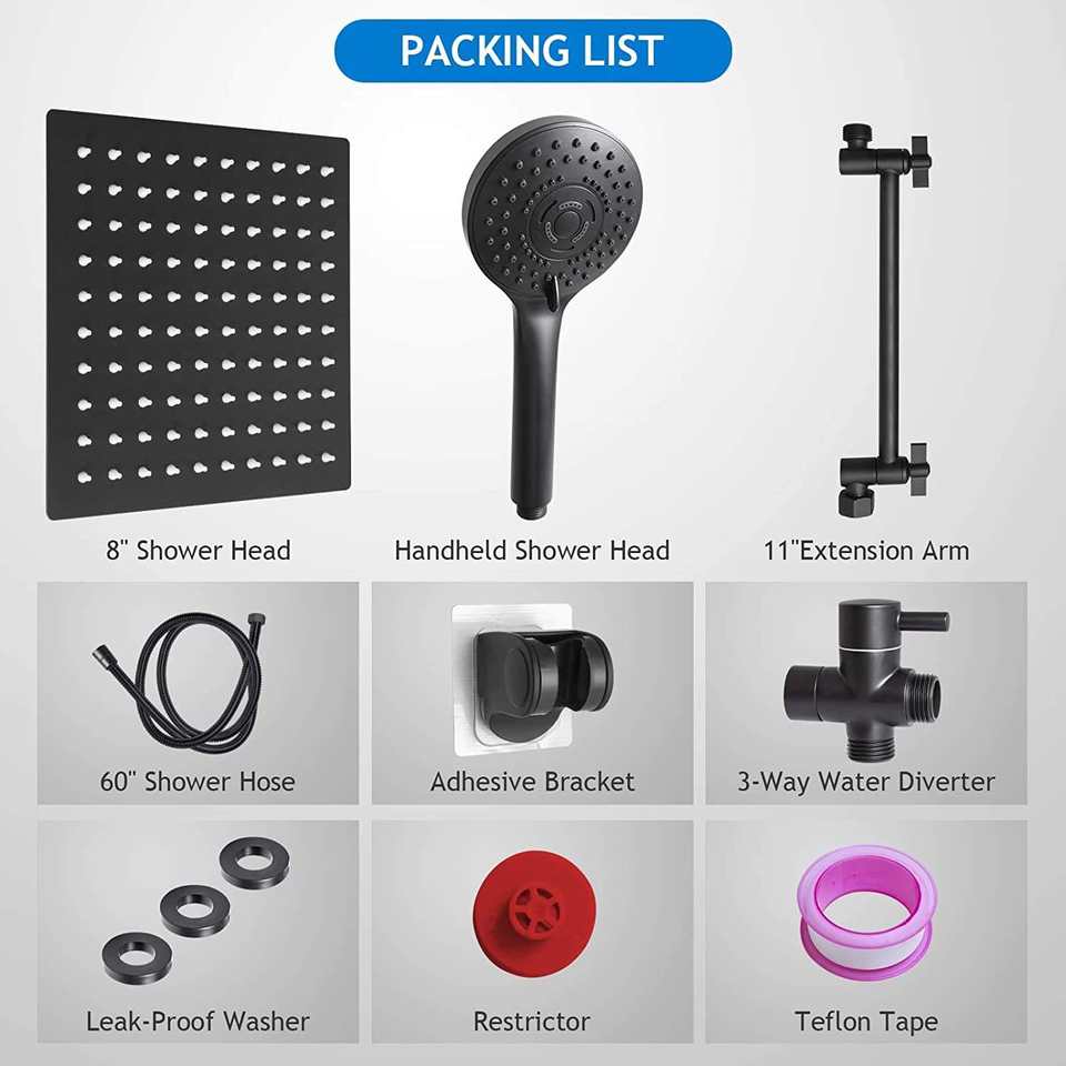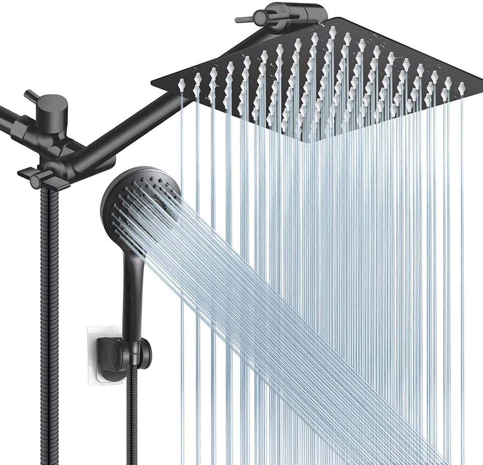 Pommeau de douche noir mat combiné pomme de douche pluie 8 pouces et 5 réglages ensemble de pommeaux de douche à main