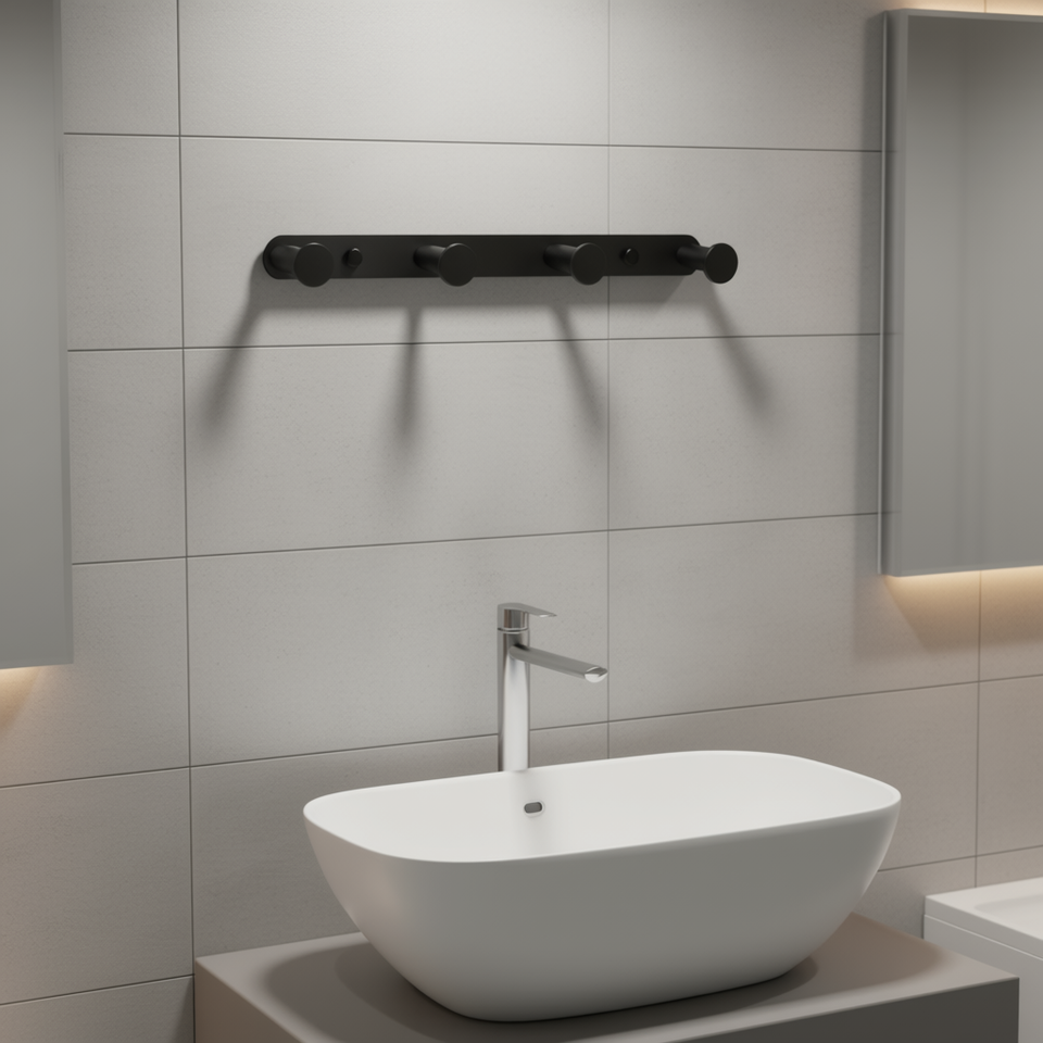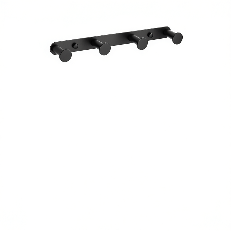 Porte-serviettes mural en acier inoxydable noir mat, 4 crochets, accessoire de salle de bain, design minimaliste moderne