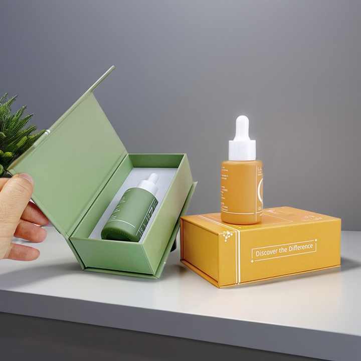 Flacon compte-gouttes en verre mat coloré pour sérum facial et huile essentielle, avec emballage personnalisable et logo, pour 30 ml et 60 ml