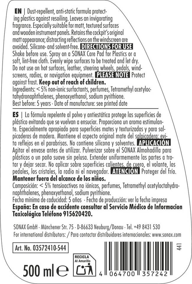 Effet Mat Soin Intérieur Voiture Sport Fraîcheur 500ml Finition Moderne avec Parfum Dynamique pour l'Intérieur de la Voiture