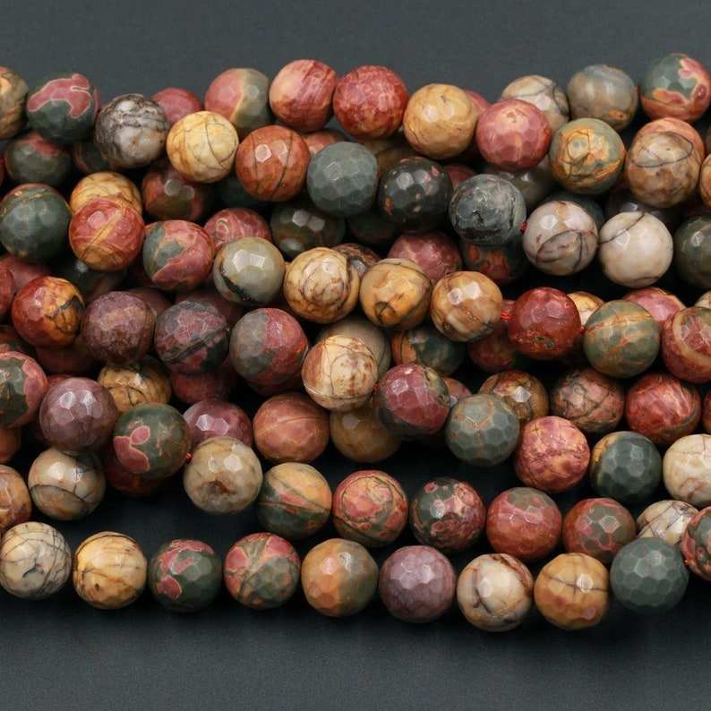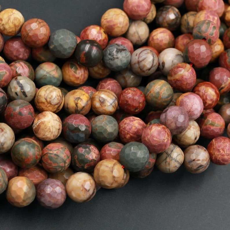 Perles rondes en jaspe rouge facetté mat, également appelées jaspe Picasso multicolore, pour la création de bijoux