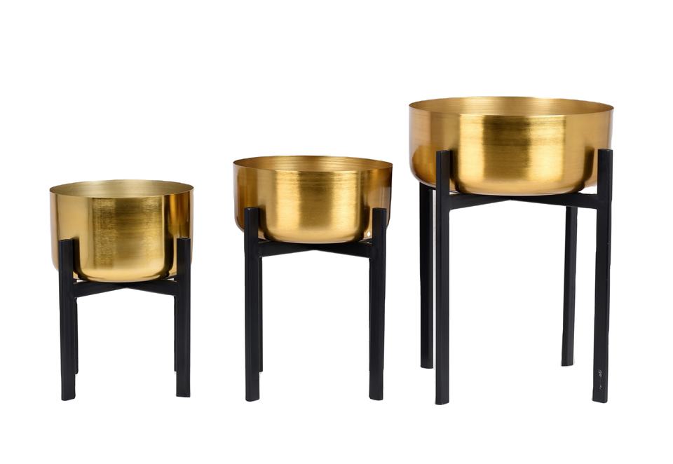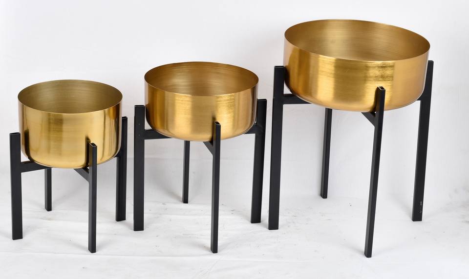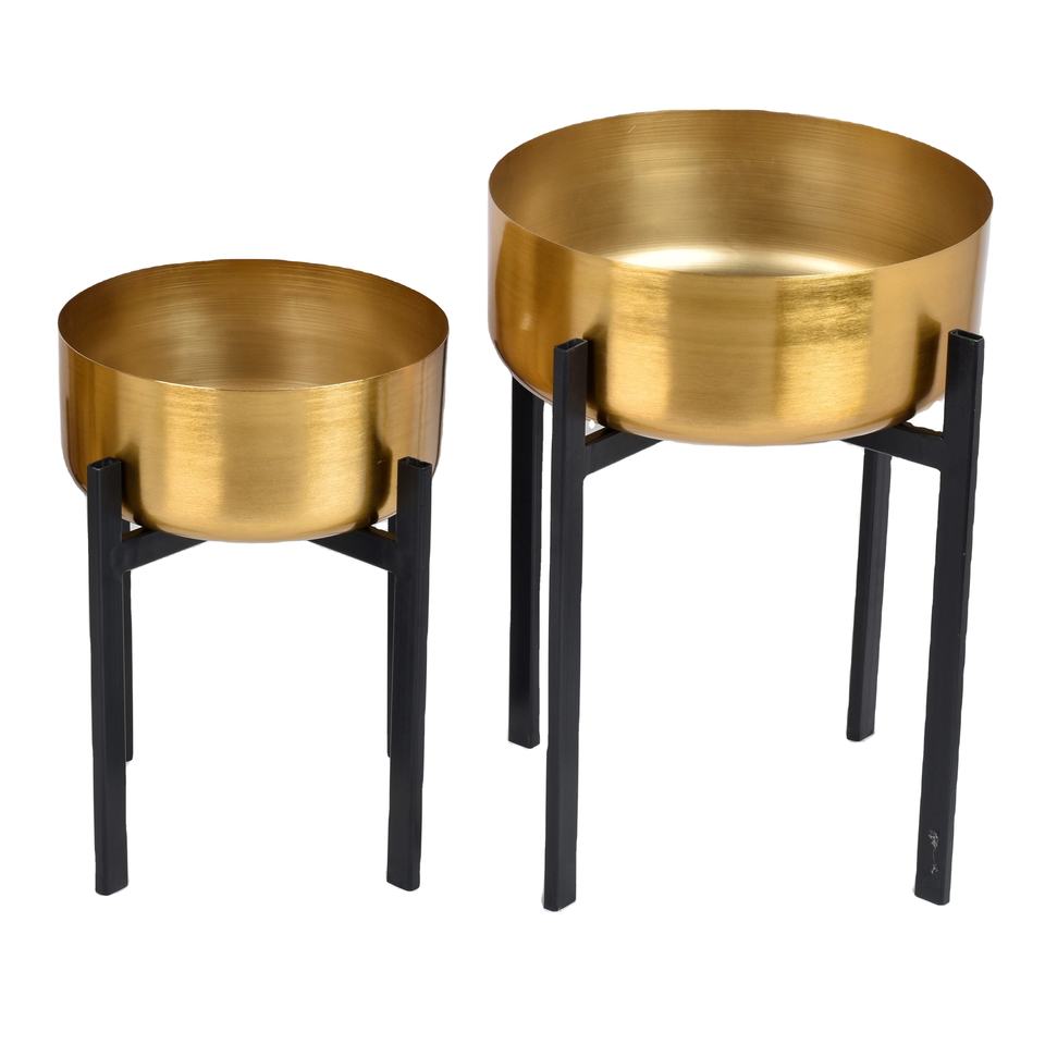Jardinière en fer plaqué or mat avec support en acier enduit de poudre noire, style fermier, logo personnalisé, vente en gros, durable, utilisation en jardin
