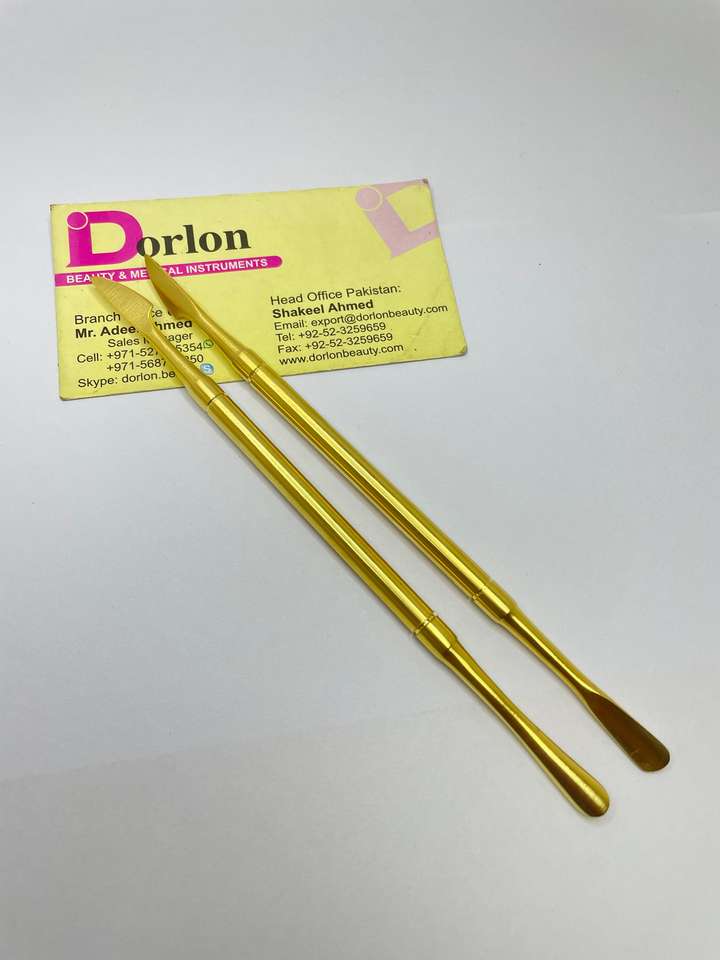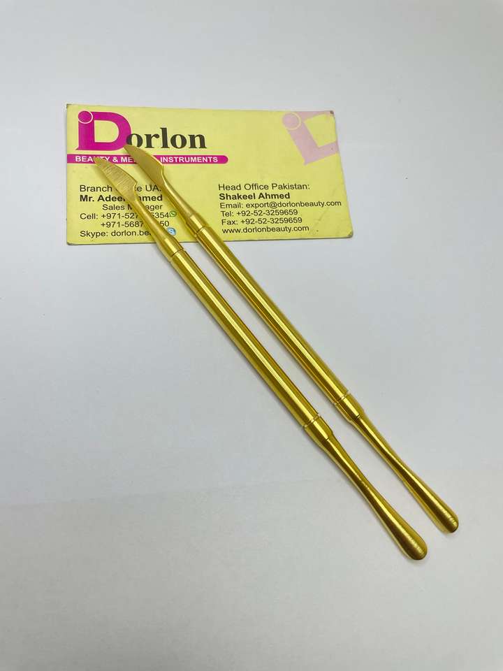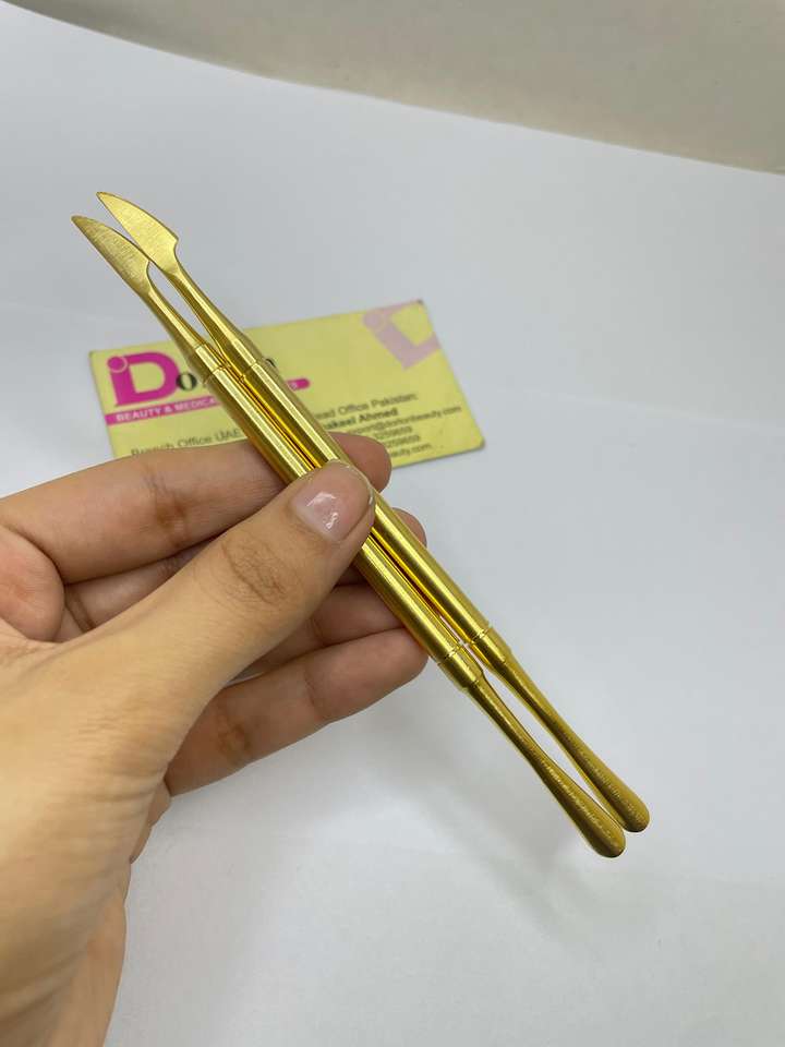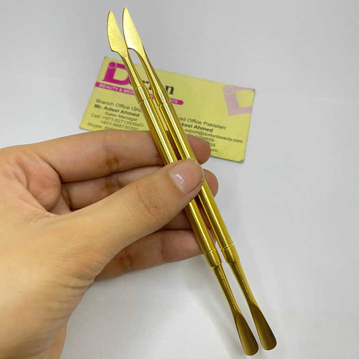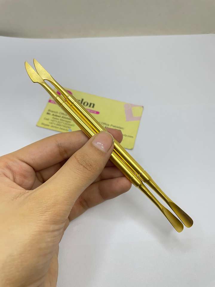 Outil de nettoyage des ongles en acier inoxydable plaqué or mat poussoir à cuticules à double extrémité couteau cuillère longue jauge incurvée