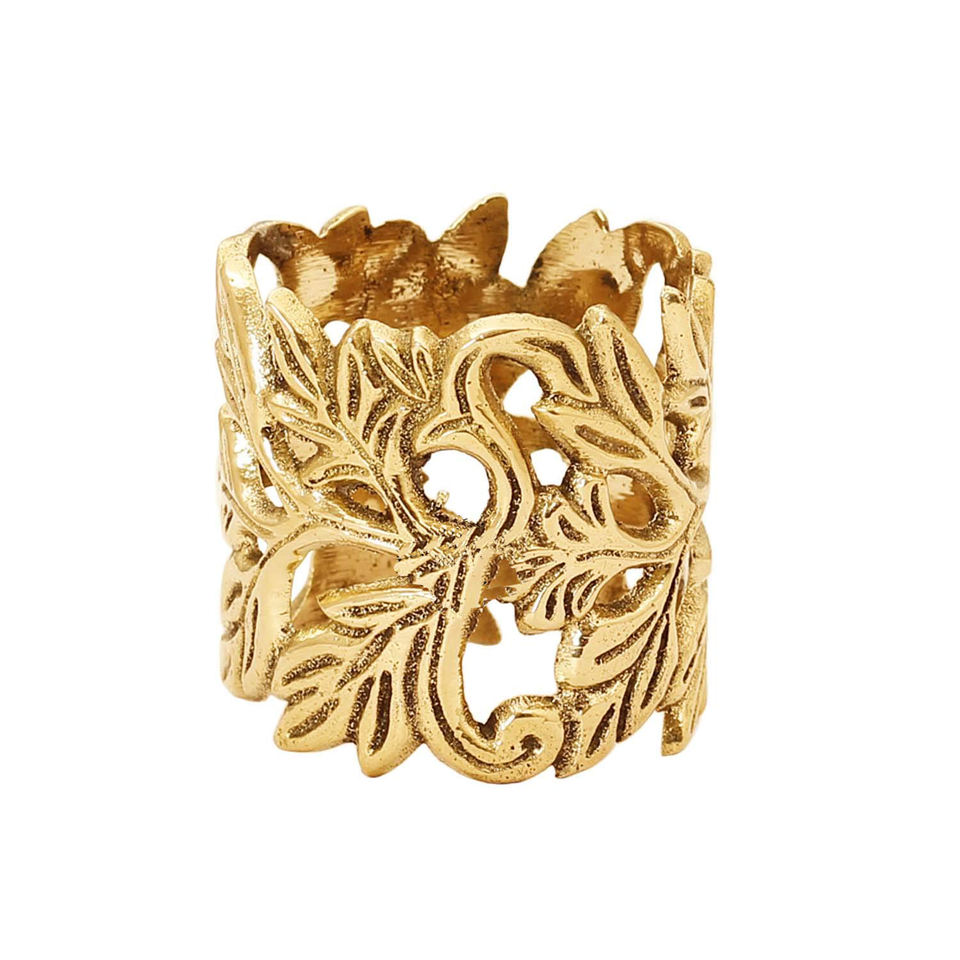 Anneau de serviette rond en or mat, finition métallique minimaliste, support pour une mise en scène de table élégante et raffinée