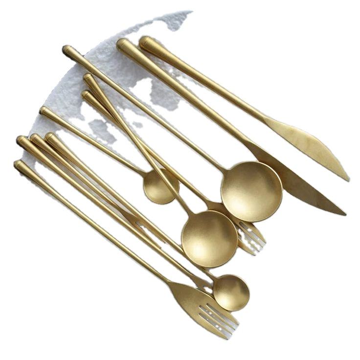 Ensemble de couverts en métal doré mat pour table à manger avec un look minimaliste élégant et un revêtement durable résistant à la rouille