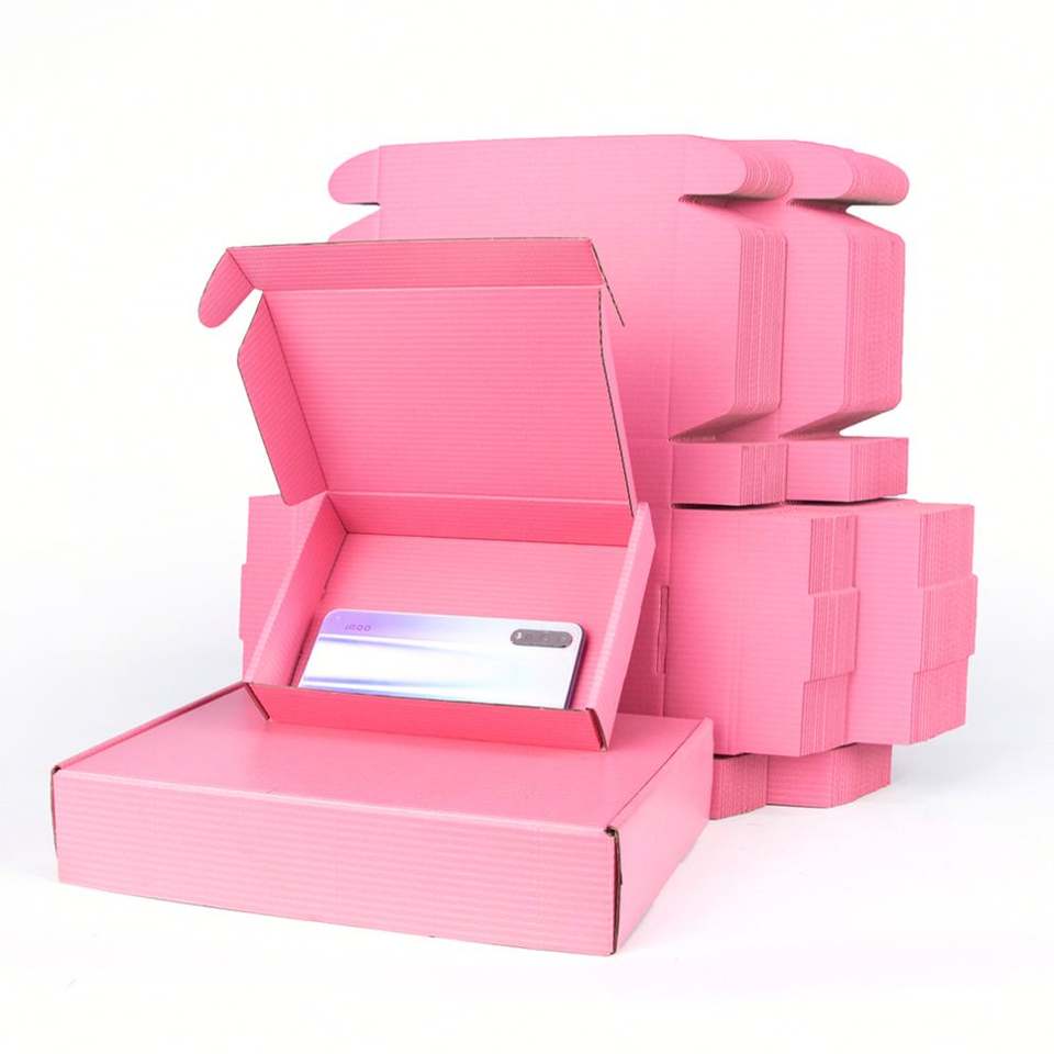 Boîte d'expédition en carton ondulé kraft mat, matériaux recyclés, noir, blanc, rose, bleu, taille personnalisée, style dossier, vernissage