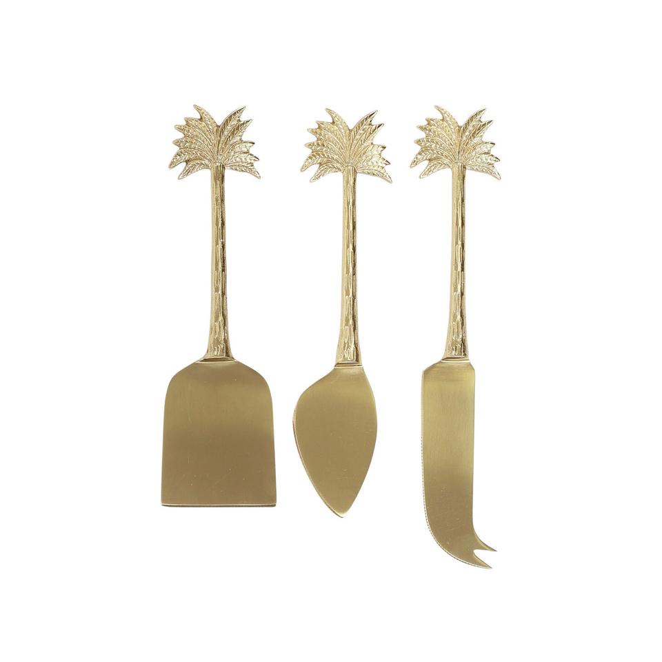 Matte Polished Brass Cheese Cutlery Set Custom Size Palm Design Cheese Knives for Home Use and Wholesale