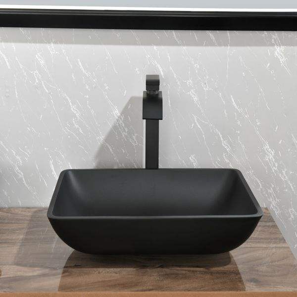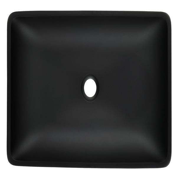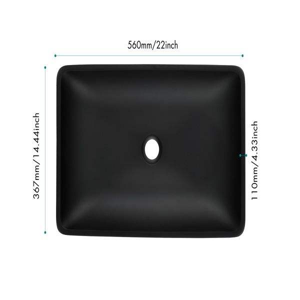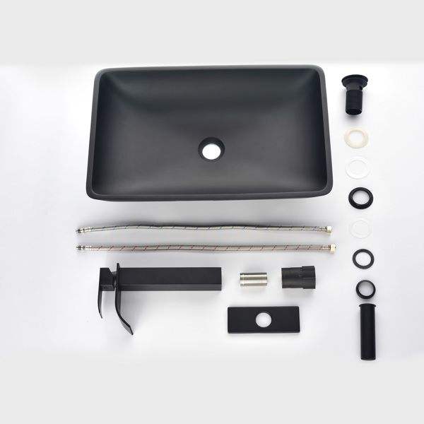 Matte Shell Glass Rectangular Vessel Bathroom Sink 14.38\" L X 22.25\" W X 4.38\" H Black Faucet Pop Drain Matte Black Finish