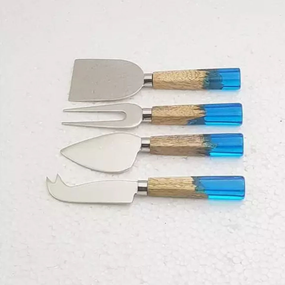 Ensemble de 4 couteaux à fromage en acier inoxydable mat avec manche en résine PVD plaqué or meilleure qualité à un prix raisonnable ensemble de couteaux à fromage