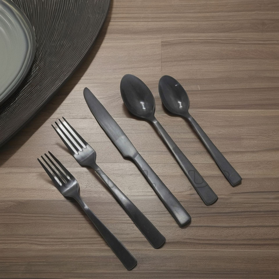 Ensemble de 5 couverts en acier inoxydable mat, ustensiles de cuisine écologiques à surface revêtue de PVD pour la maison, le restaurant et les cadeaux.