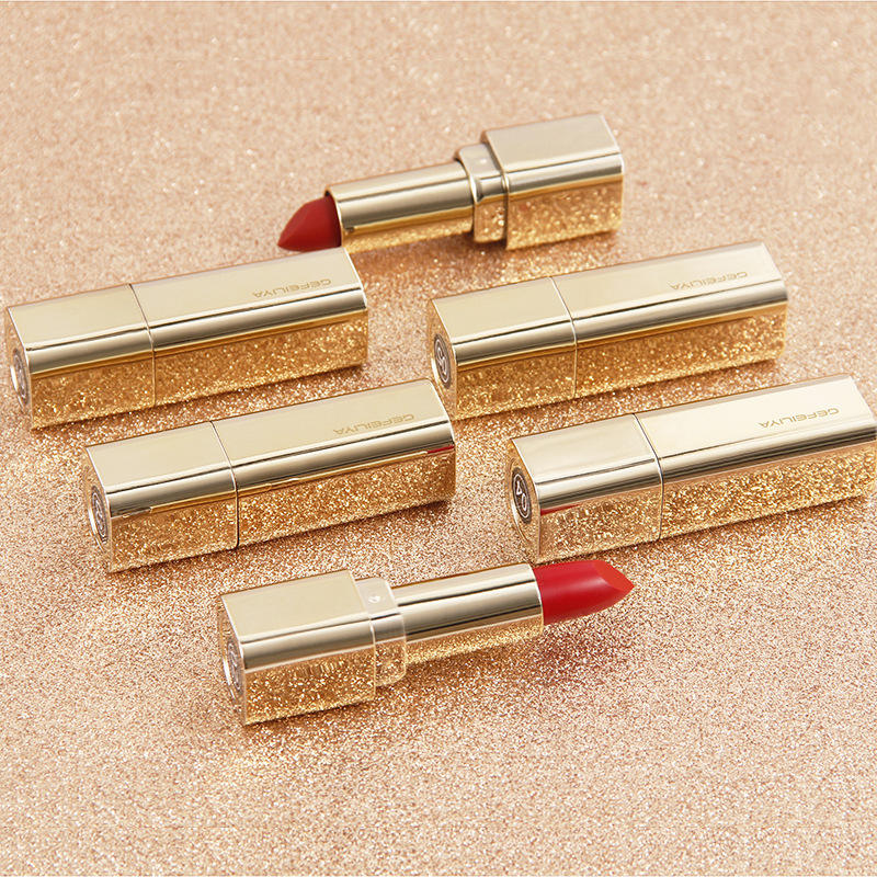 Rouge à lèvres en velours mat, Tube doré, beauté, vente en gros, pas facile à décolorer
