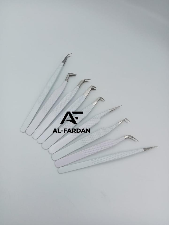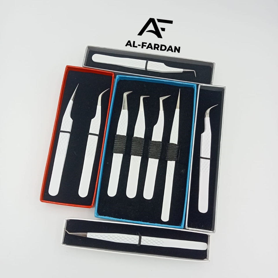 Pince à cils avec logo personnalisé, ensemble complet de couleur blanche mate, boîtes à cartes incluses, pince à cils volume en acier inoxydable japonais
