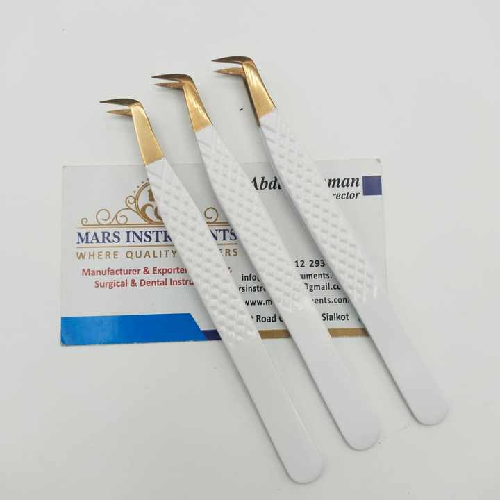 Pince à épiler Volume Blanc mat avec pointe dorée pour extension de cils Logo personnalisé de haute qualité