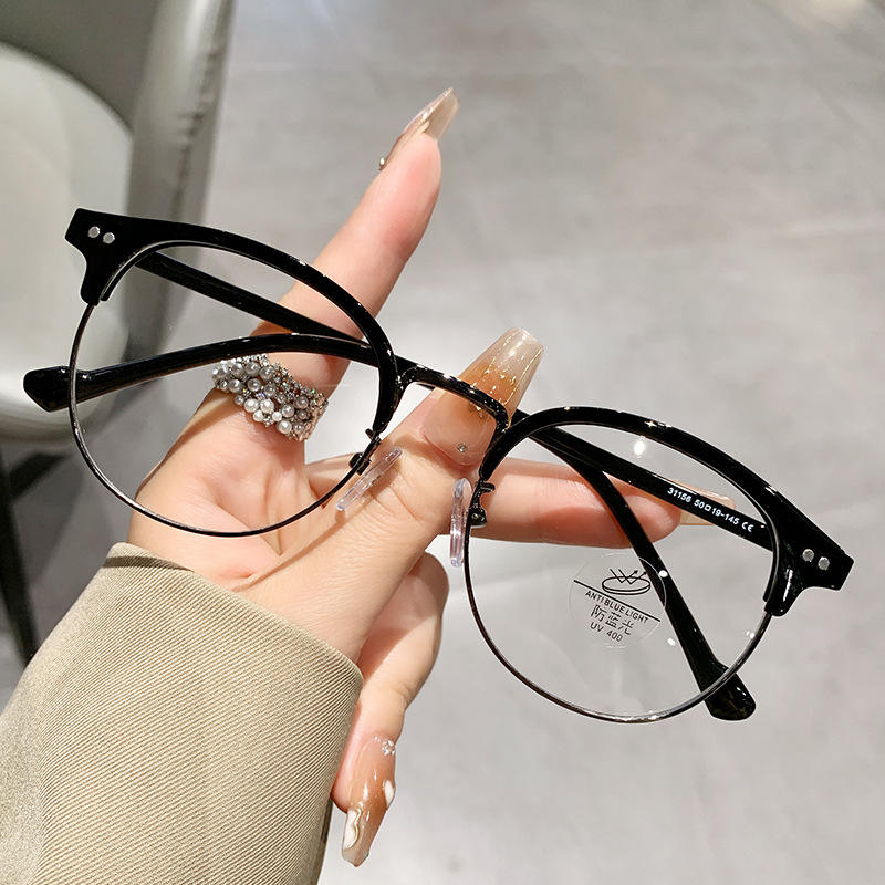 Matteke Sight – lunettes rondes anti-lumière bleue pour femmes, monture en métal TR, lentilles en résine, lentilles plano, Protection UV400
