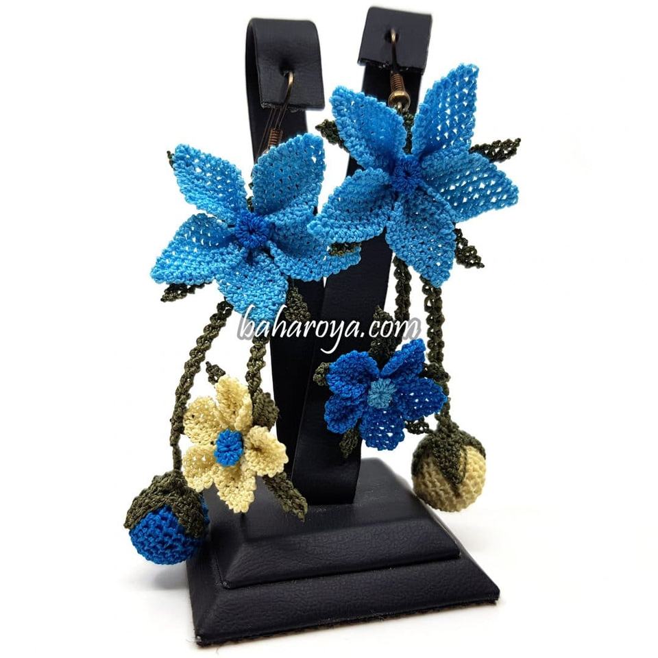 Mavi İğne Oyası Sarkaçlı Toplu Küpe Moda Elbisesi Takma Eşyaları