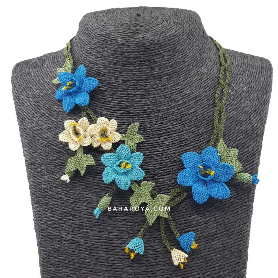 Mavi İğne Oyası Tuğra Kolye Moda Kolye Ve İğne Oyası Seti