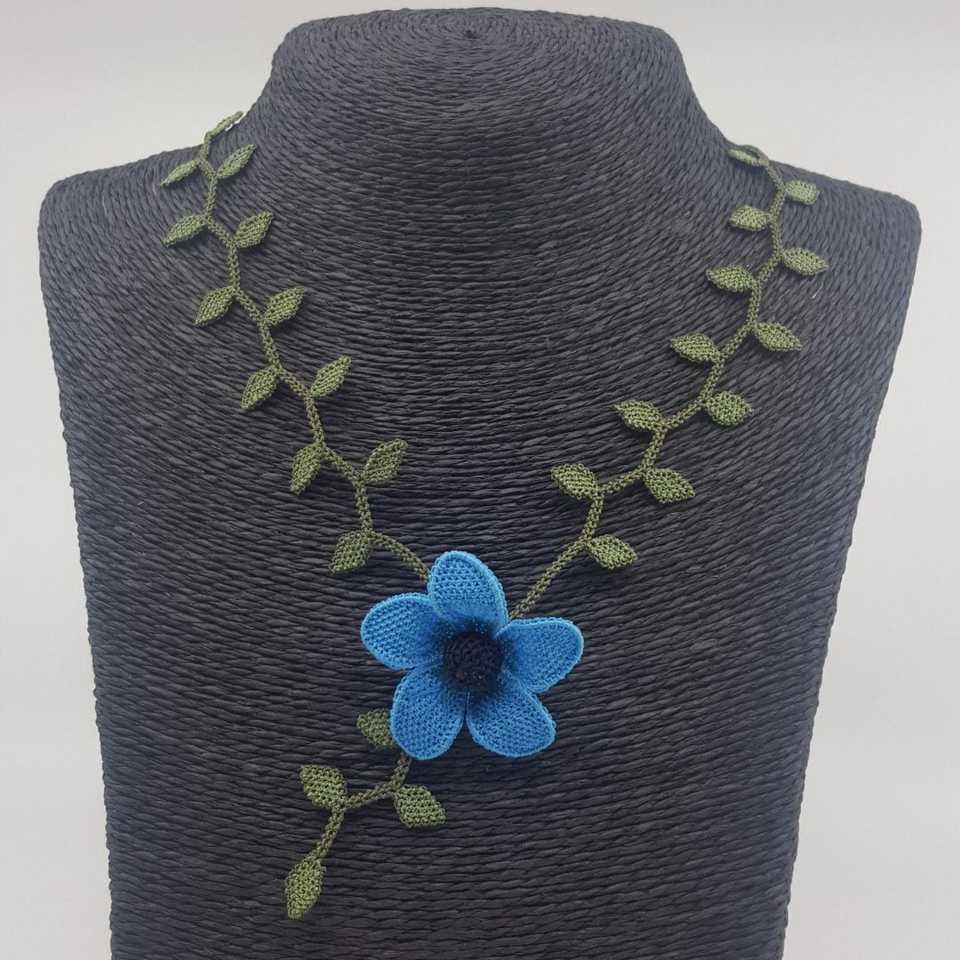 Mavi İğne Oyası Zambak Yapraklı Kolye Moda Pembe Pendants Ve Nusretler